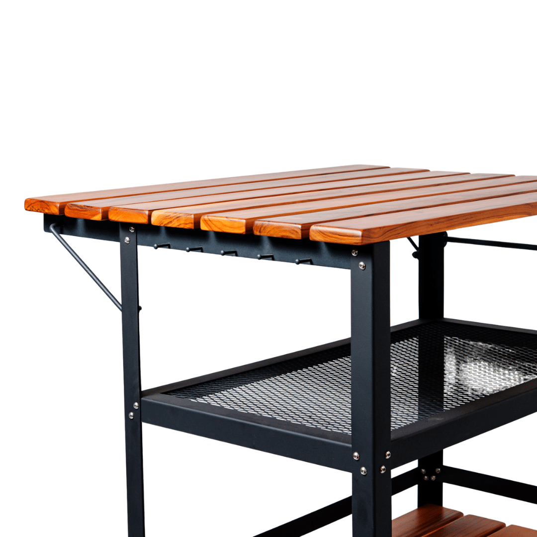 Este combo especial está diseñado para quienes desean elevar la experiencia de cocinar al aire libre con una estación sólida, práctica y equipada con herramientas esenciales para trabajar sus hornos Ooni con comodidad y eficiencia.